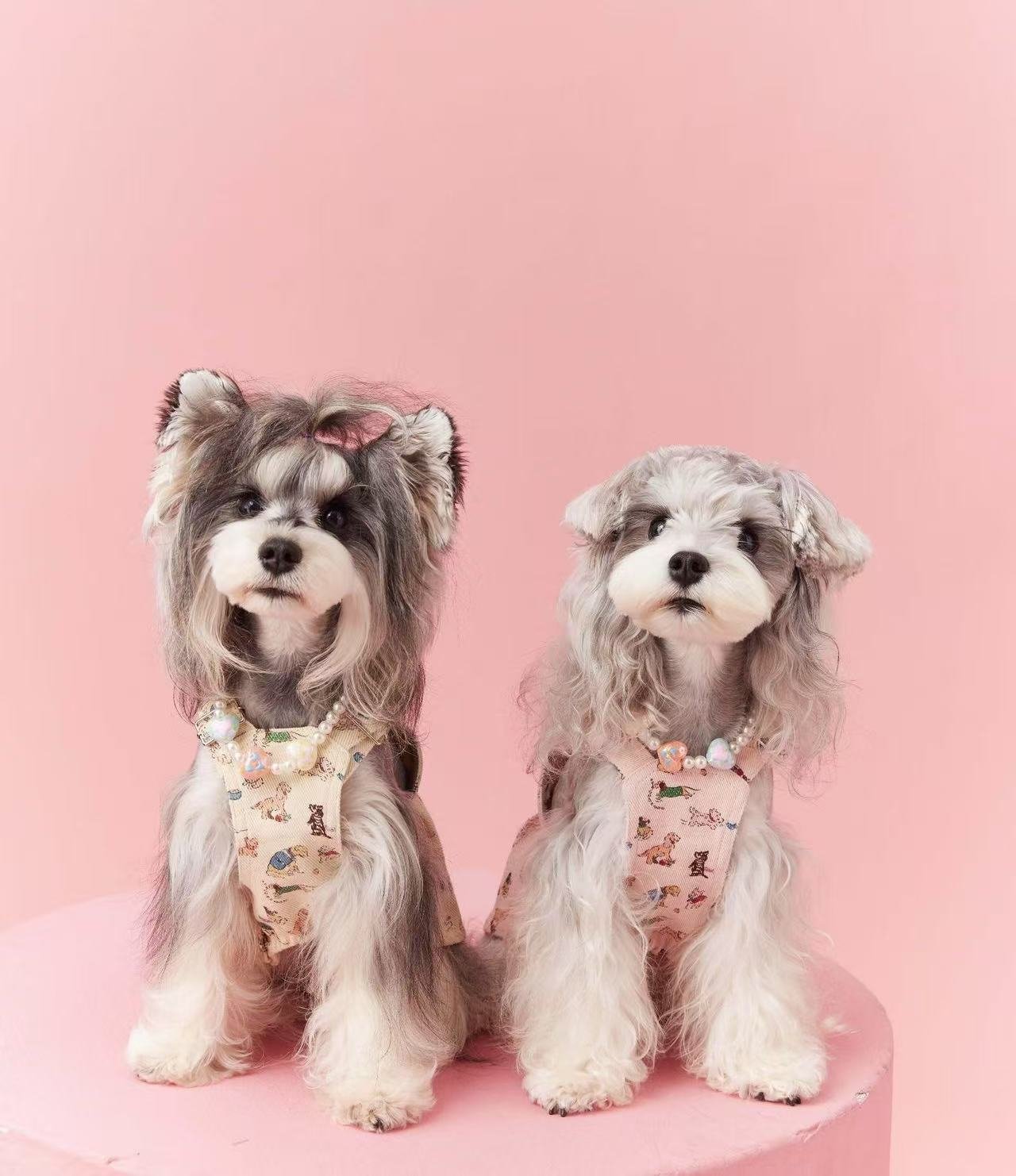 Adorable Puppy Print Pinafore Dress with Leash AttachmentAdorable Puppy Print Pinafore Dress with Leash Attachment