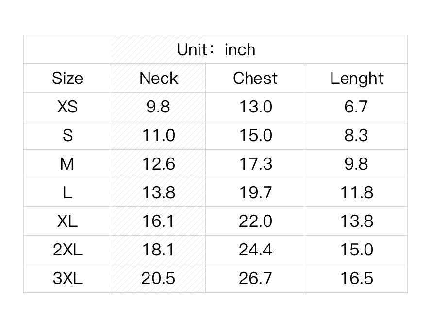 XS, S, M, L, XL, 2XL, 3XL