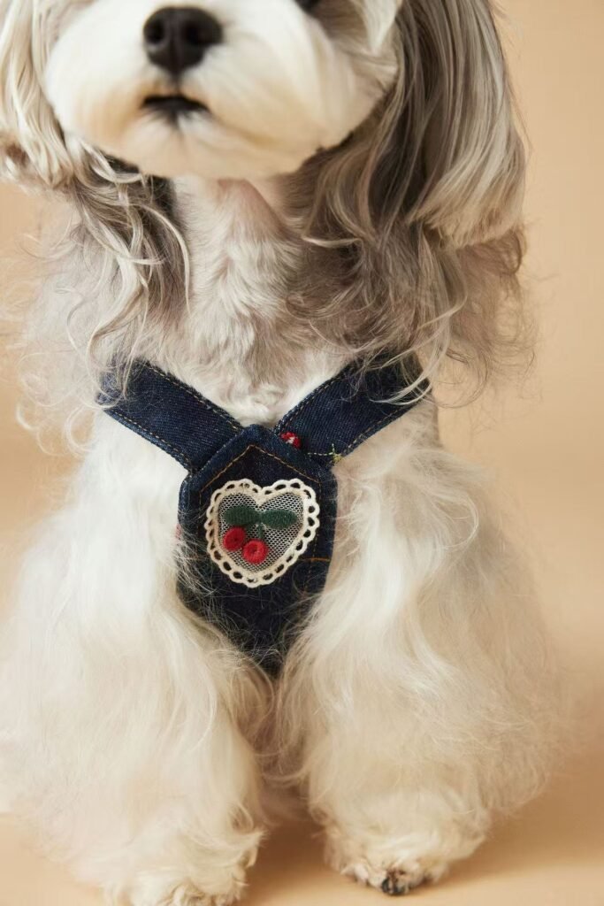 Cherry-Embroidered Pinafore Dress with Leash Attachment for Spring-SummerCherry-Embroidered Pinafore Dress with Leash Attachment for Spring-Summer