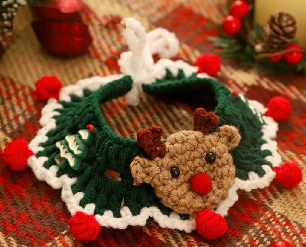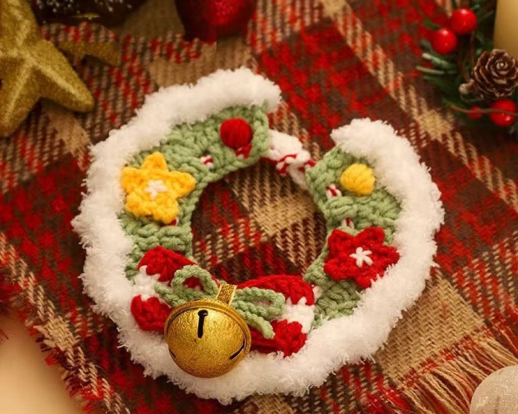 Christmas-style handmade knitted cat scarf